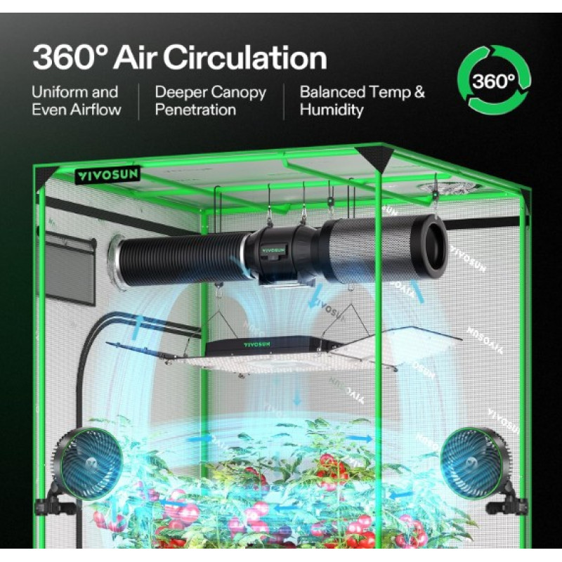В центре панели расположен интегрированный циркуляционный вентилятор, который направляет воздух в глубину кроны — туда, где обычные боковые вентиляторы не достают. Это улучшает микроклимат вокруг растений, снижает риск перегрева и застоя влаги, помогает растениям укреплять стебли и получать больше кислорода. Такая комбинированная система «свет + воздух» делает AW200SE не просто лампой, а полноценным модулем для более быстрого и здорового роста.