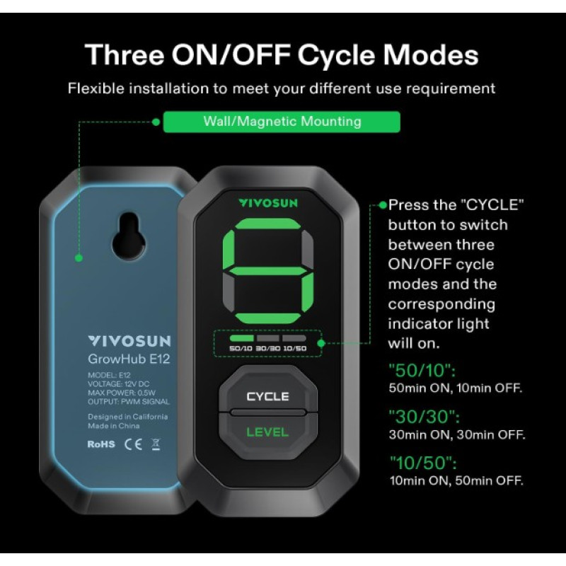 - Возможность расширения – подключение к E42A multi-device controller или GrowHub Smart App для интеллектного дистанционного управления