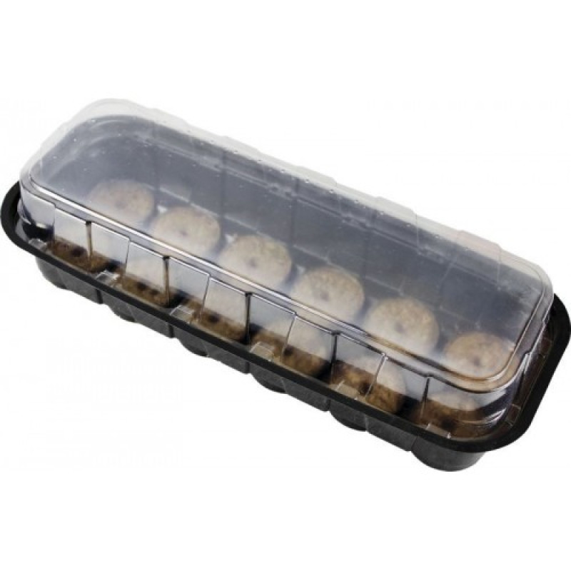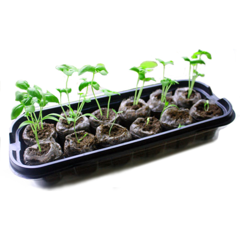 Набор для выращивания рассады: поддон на 12 таблеток, таблетки в оболочке-сетке, прозрачная крышка.