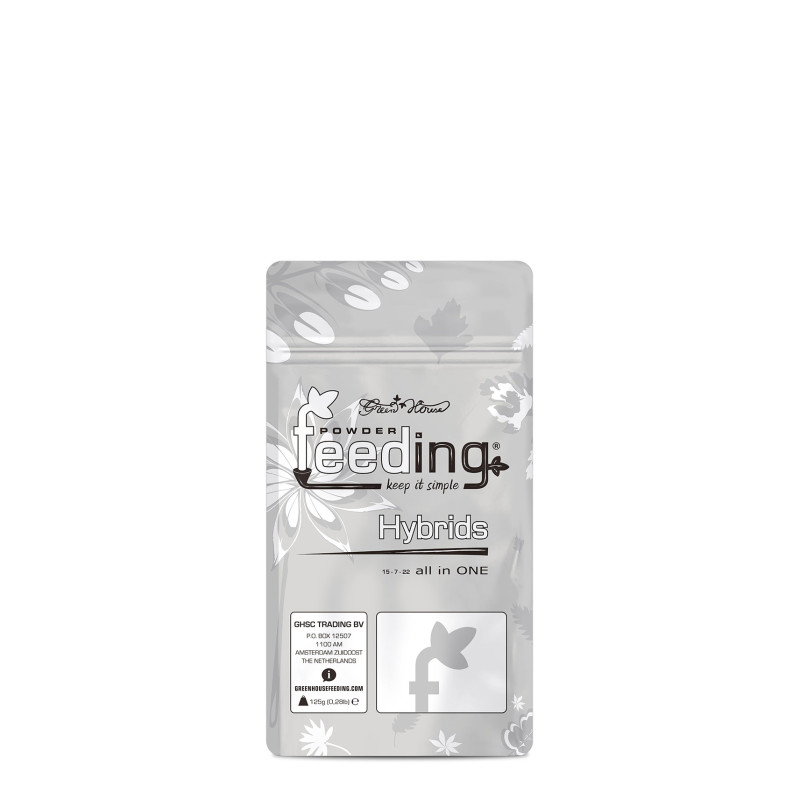 Powder Feeding Hybrids минеральное сухое удобрение, специально для гибридных сортов растений с периодом цветения 8-10 недель. Применяется на всём цикле от рассады до сбора урожая и содержит оптимальную комбинацию питательных веществ и микроэлементов.