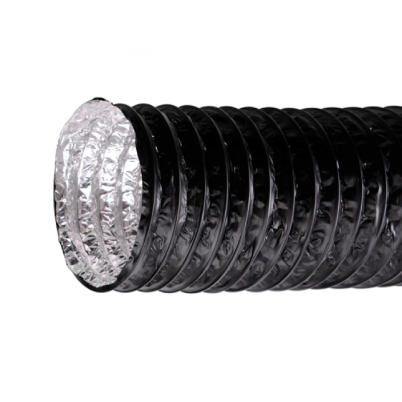 Качественный гибкий воздуховод из ламинированной алюминиевой фольги с наружным слоем из ПВХ. Используется для отвода не только холодного, но и горячего воздуха. Очень важно это учитывать - т.к. обычные распространённые воздуховоды быстро деформируются и расслаиваются под воздействием высоких температур.