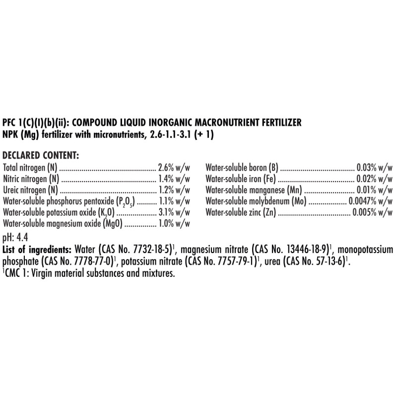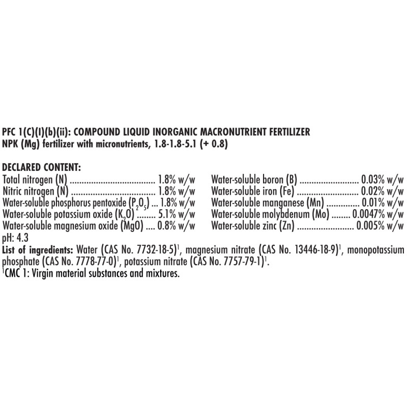 Це добриво, орієнтоване на результат, просте та зручне у використанні. Завдяки повному набору хелатованих мікроелементів з точним співвідношенням поживних речовин для кожної стадії розвитку ваші рослини отримують необхідне їм харчування, щоб винагородити вас більшими, морозними, багатими на смолу квітами.