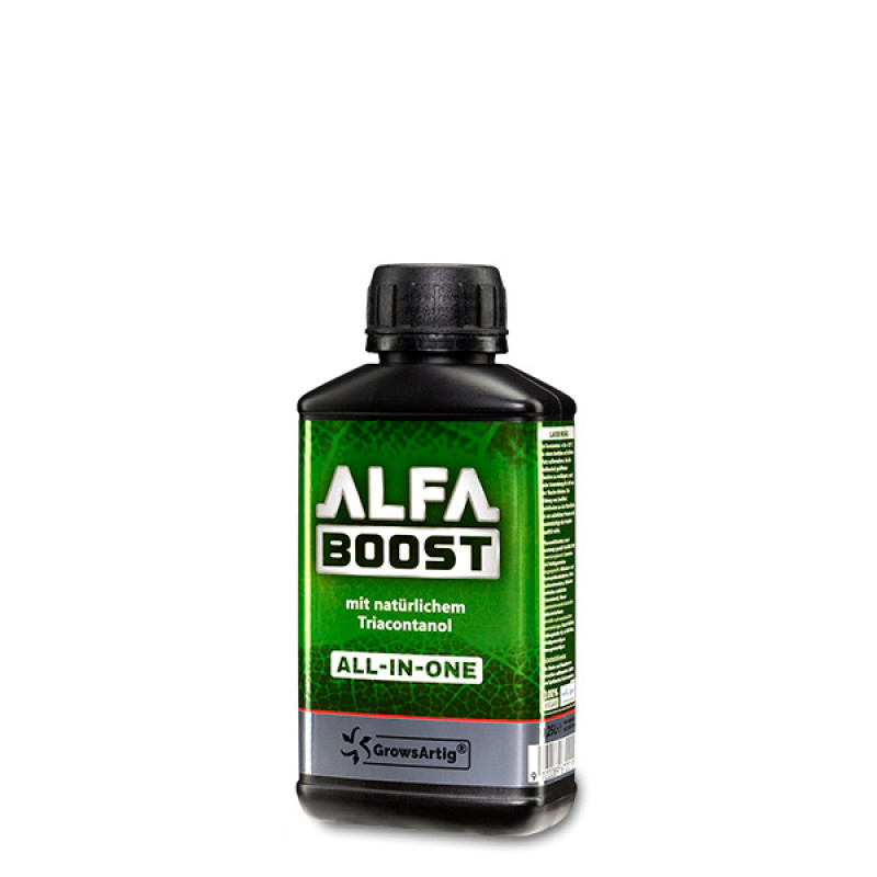 Alfa Boost 250ml— це інноваційний бустер і біостимулятор широкого спектра дії, створений для забезпечення максимального врожаю та здоров'я ваших рослин. Цей продукт підтримує рослини на кожному етапі їхнього розвитку — від пророщування насіння до збирання врожаю, гарантуючи багатий, здоровий та стійкий урожай.