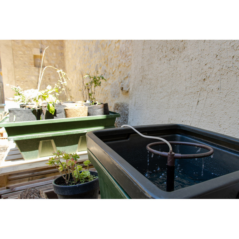 Система працює за рахунок того, що повітря всмоктує поживний розчин з резервуара і капає назад вниз через субстрат з глиняної гальки і коріння рослин. Ця проста і надійна конструкція неймовірно ефективно доставляє рослинам поживний розчин з ідеальним вмістом кисню - саме те, що необхідне для оптимального росту і цвітіння. Конструкція з двох ємностей забезпечує легкий доступ до резервуару та коріння.