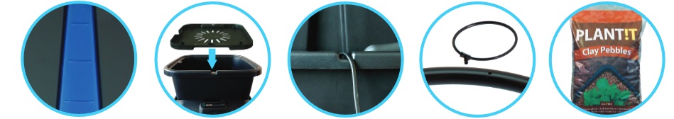 Дана система дуже зручна у використанні, тому що має вбудований рівень для перевірки розчину, а також отвір в кришці для контролю за EC і pH, що виключає пошкодження рослини.
