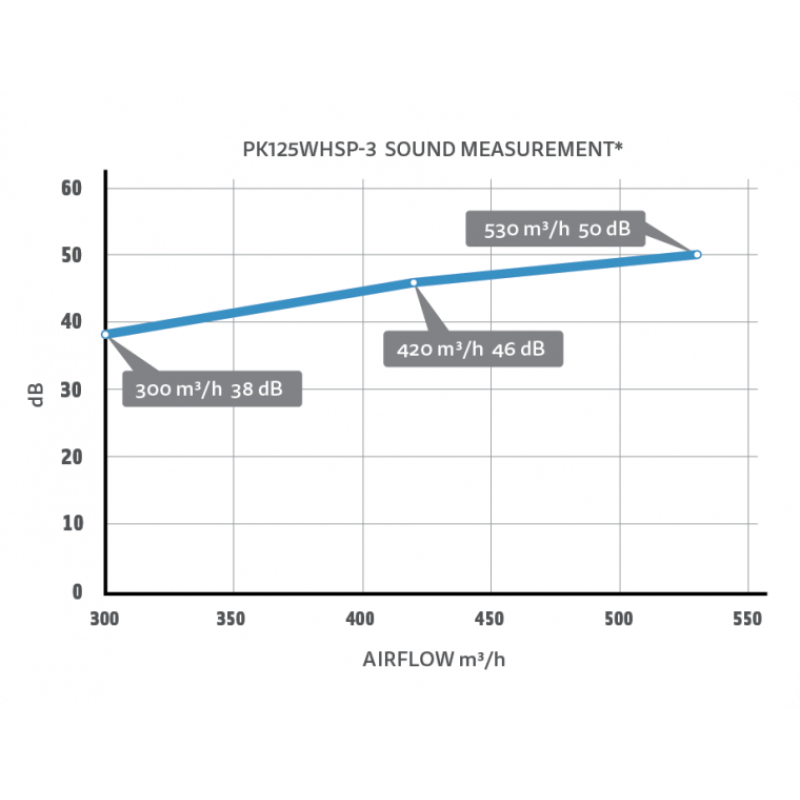 Безшумний канальний вентилятор у корпусі Whisperblower Fan d125мм із трьома швидкостями. Завдяки новій геометрії лопатей та довговічним шарикопідшипникам, що не потребують обслуговування, забезпечується особливо тиха робота. Дві головні відмінності даного вентилятора від аналогів - всередині вентилятора конус з перфорацією і шумогасящим матеріалом, а також новий дизайн зовнішньої частини корпусу - завдяки якому потік повітря спрямовується таким чином, що створюючи більший тиск при тому ж енергоспоживання, що й у звичайних моделей, він робить менше шуму.