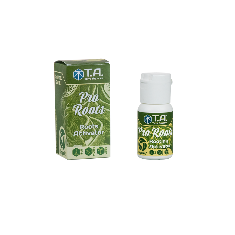 Pro Roots Terra Aquatica (GHE) - дуже потужний і суперконцентрований стимулятор кореневої системи для гідропоніки та ґрунту. Pro Roots значно посилює ріст кореневих відростків, розвиток коренів і зміцнення кореневої шапки. У підсумку ми отримуємо велику, здорову кореневу масу, підвищену стійкість до плісняви та грибків (включно з відволожуванням живців тощо), більш здорові та енергійні рослини від живців до зрілості.