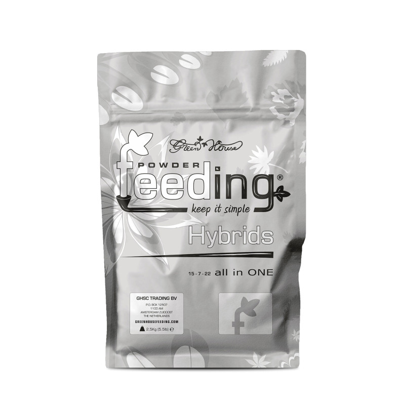 Powder Feeding Hybrids - мінеральне сухе добриво спеціально для гібридних сортів рослин з періодом цвітіння 8-10 тижнів. Застосовується на всьому циклі від розсади до збору врожаю і містить оптимальну комбінацію поживних речовин і мікроелементів.