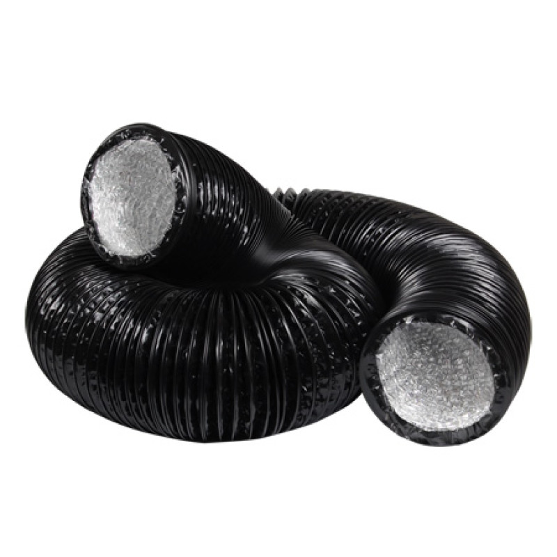Якісний гнучкий повітропровід із ламінованої алюмінієвої фольги із зовнішнім шаром із ПВХ. Використовується для відведення не тільки холодного, а й гарячого повітря. Дуже важливо це враховувати - тому що звичайні поширені повітропроводи швидко деформуються і розшаровуються під впливом високих температур.