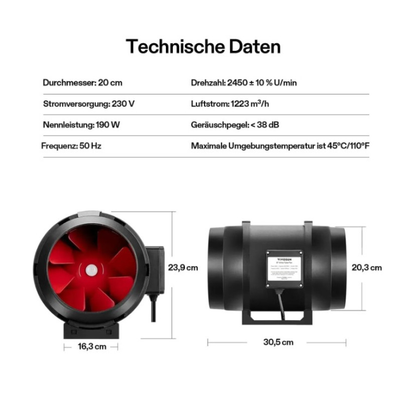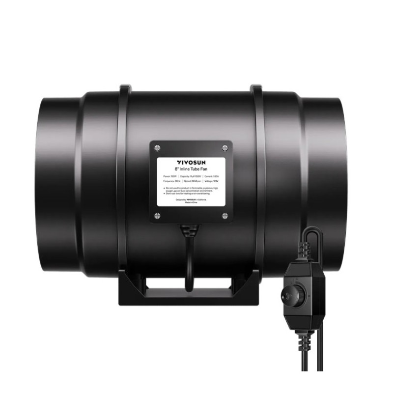 VIVOSUN R8 Inline Fan – це високопродуктивний витяжний вентилятор для гроубоксів великого розміру, теплиць та приміщень для вирощування. Завдяки діаметру 8 дюймів (200 мм) і потужному повітряному потоку він ефективно видаляє тепле та вологе повітря, подає свіже й підтримує стабільний мікроклімат. Вбудований регулятор швидкості дозволяє налаштовувати роботу вентилятора залежно від стадії росту рослин.