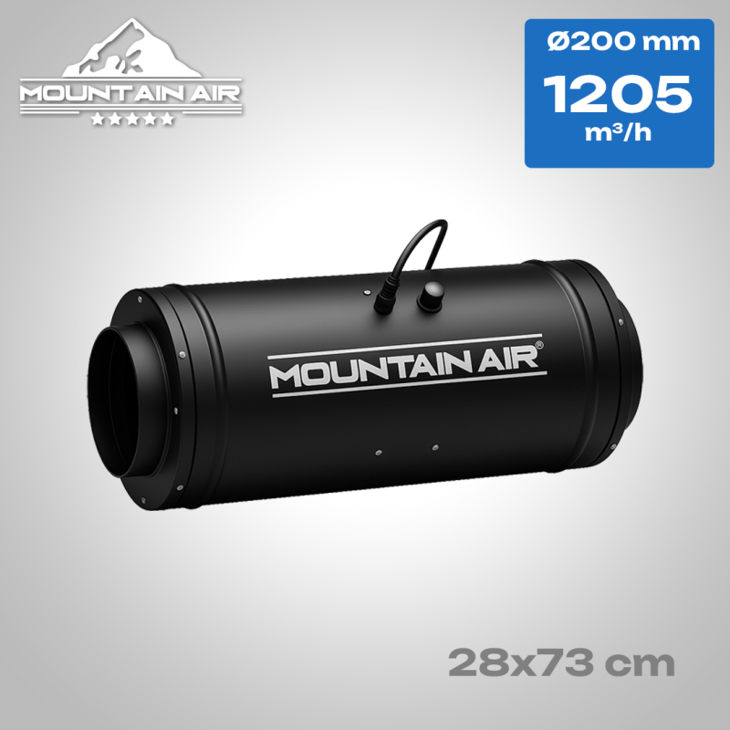 Тихий (безшумний) канальний високошвидкісний вентилятор Mountain Air EC Whisper Fan — це преміальне рішення для витяжки та припливу повітря у гроубоксі, де важливі висока продуктивність і низький рівень шуму. Оснащений цифровим EC-(Electronically Commutated) мотором і вбудованим контролером з режимами ручного управління і термостатичного контролю. Корпус звукоізольований, вхід виконаний у вигляді турбінного впуску, що дозволяє домогтися оптимального тиску і стабільного повітряного потоку навіть при довгих повітроводах.