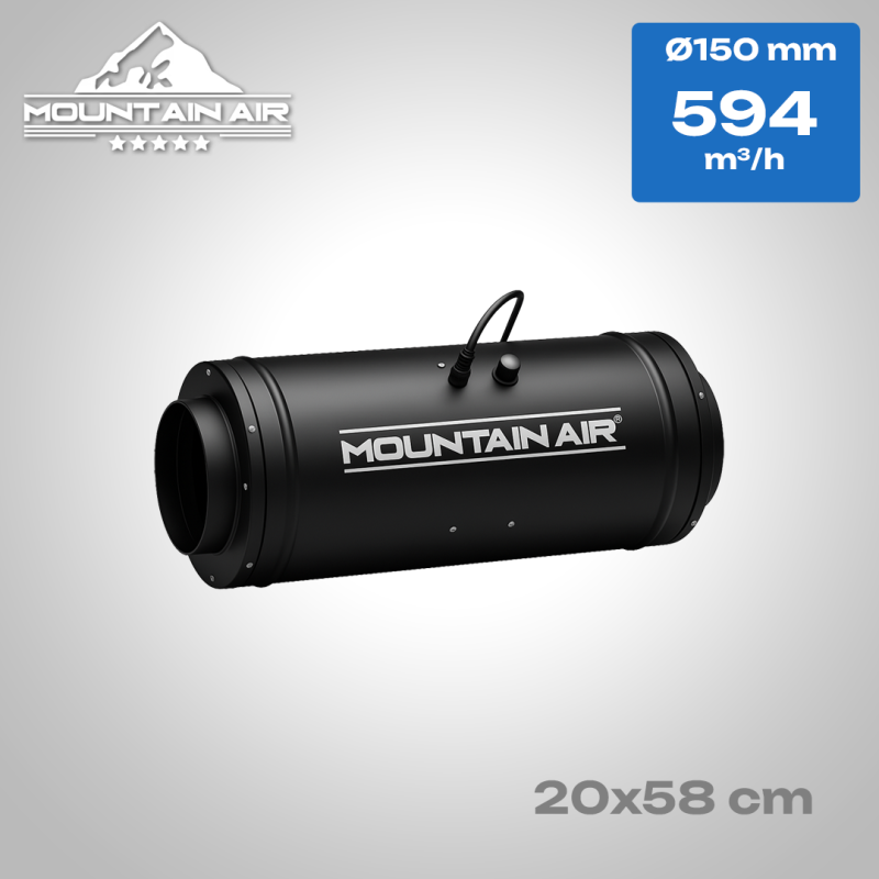 Тихий (безшумний) канальний високошвидкісний вентилятор Mountain Air EC Whisper Fan — це преміальне рішення для витяжки та припливу повітря у гроубоксі, де важливі висока продуктивність і низький рівень шуму. Оснащений цифровим EC-(Electronically Commutated) мотором і вбудованим контролером з режимами ручного управління і термостатичного контролю. Корпус звукоізольований, вхід виконаний у вигляді турбінного впуску, що дозволяє домогтися оптимального тиску і стабільного повітряного потоку навіть при довгих повітроводах.