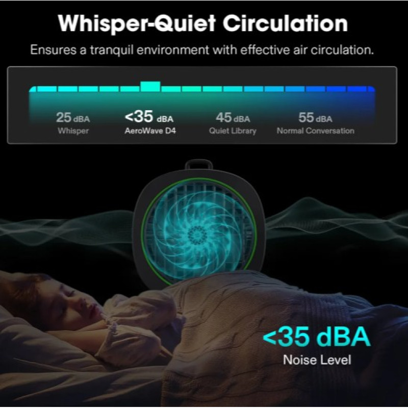 - Тихая работа – уровень шума менее 35 дБА, что делает его идеальным даже для комнат, где ты отдыхаешь или спишь.