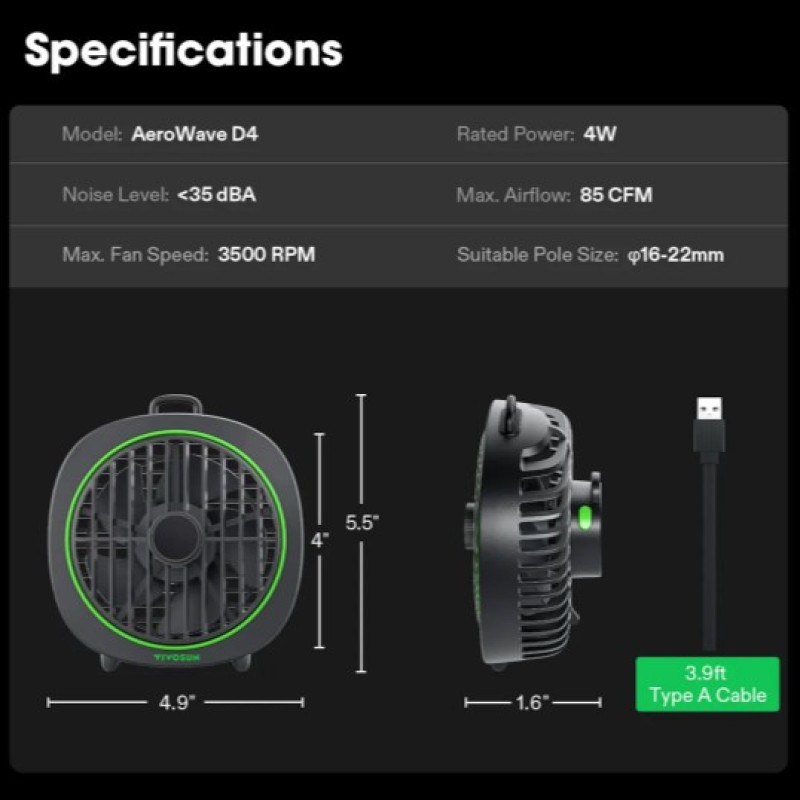 VIVOSUN AeroWave D4 – идеальное решение для ищущих эффективную и тихую циркуляцию воздуха в своем гроубоксе. Легкий, компактный и универсальный – станет незаменимым помощником как для домашних гроверов, так и для профессионалов.